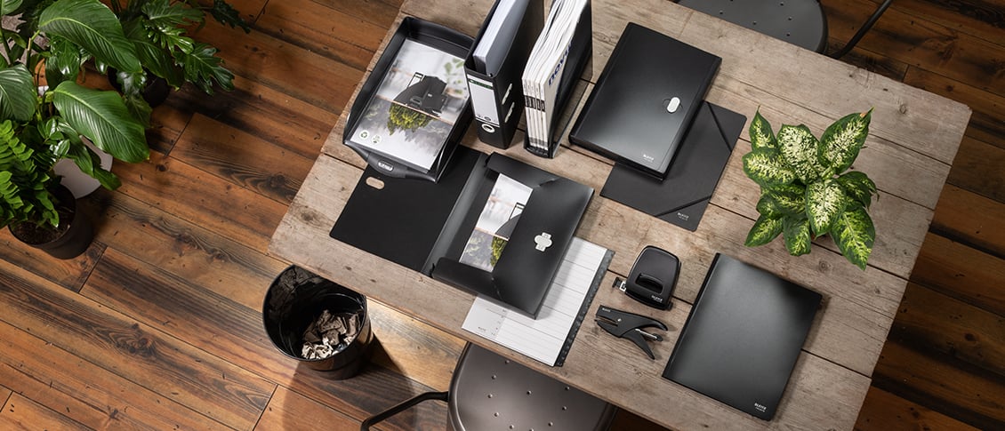 Den Papierverbrauch zu reduzieren ist ein weiterer Schritt.  Dies ist jedoch nicht immer möglich.  Versuchen Sie in diesem Fall, z.B. Druckerpapier und Notizbücher aus Recyclingpapier zu benutzen. Es gibt eine Reihe von Unternehmen, die recycelte, abfallfreie oder biologisch abbaubare Büromaterialien anbieten.  Wussten Sie, dass Leitz über ein komplettes Recycling-Sortiment verfügt? Unsere umweltfreundliche Recycle Serie ist die perfekte Ergänzung für Ihren umweltfreundlichen Arbeitsplatz.  Jeder Artikel in der Kollektion ist zu 100% recycelbar und besteht ebenfalls aus recyceltem Material.  Unser Recycle-Sortiment bietet die erstklassige Qualität und Langlebigkeit, die unsere Kunden lieben, und trägt gleichzeitig zum Umweltschutz bei. Leitz ist bestrebt, die Umwelt so wenig wie möglich zu belasten, und wir hoffen, dass Sie mit uns zusammen diesen Weg gehen werden.