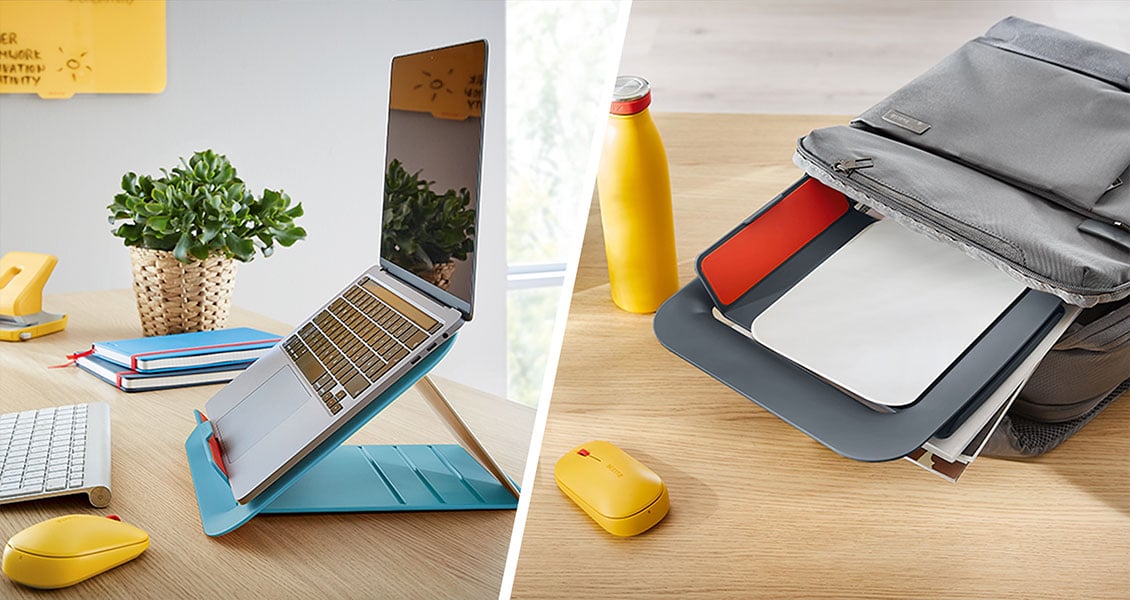 You should also bear in mind ergonomics when equipping your employees. A portable laptop stand will elevate an employee’s screen to an appropriate viewing height, to help them work comfortably. Our Leitz Ergo Cosy laptop stand folds flat when not in use, so it’s ideal for transporting between home and the office.